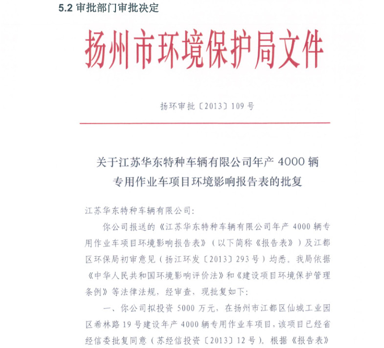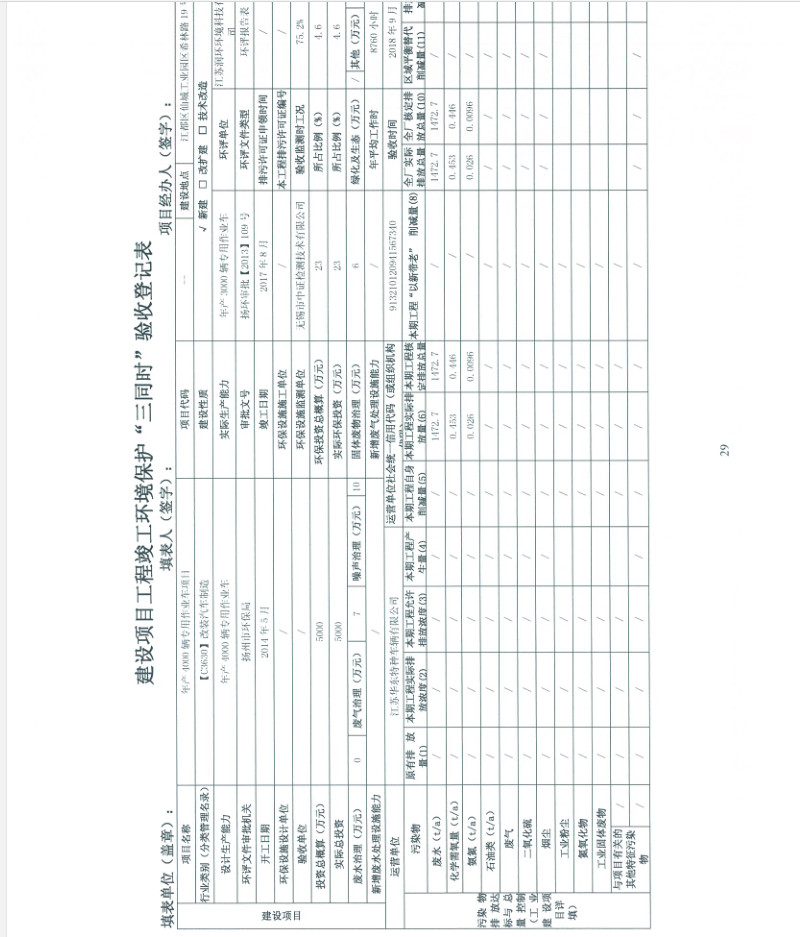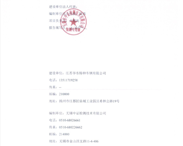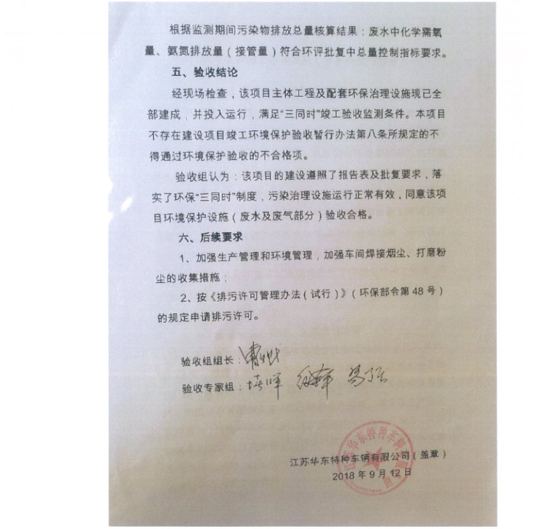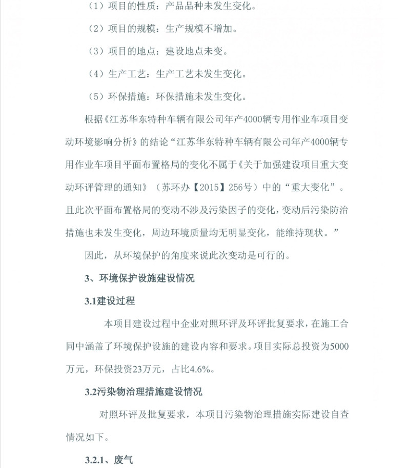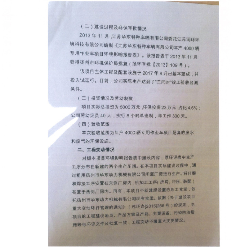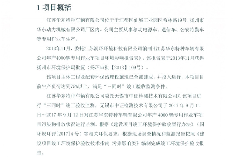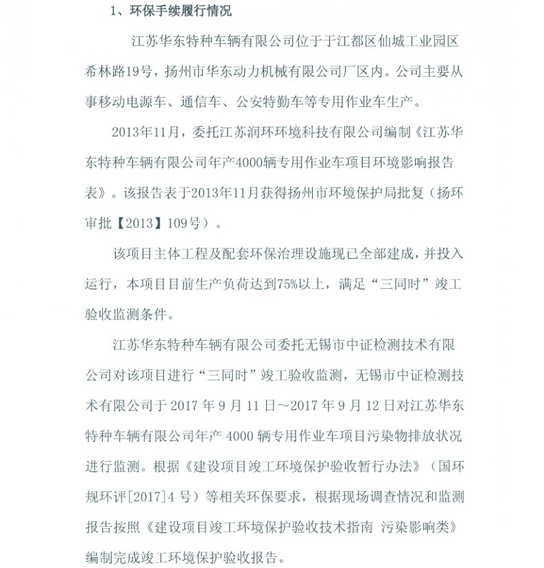 江蘇華東特種車輛有限公司年產(chǎn)4000輛專用作業(yè)車項(xiàng)目竣工環(huán)境保護(hù)驗(yàn)收?qǐng)?bào)告